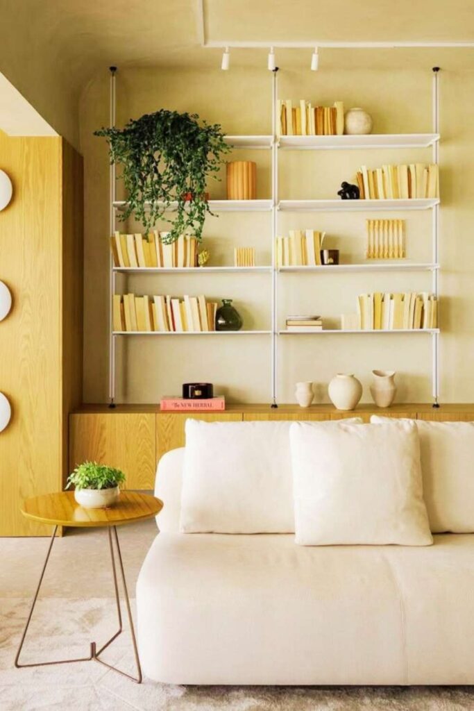⚠️ Regra de ouro: se o ambiente já tem muita informação visual, opte por uma estante neutra. Se for um espaço limpo, a estante pode trazer textura e cor.